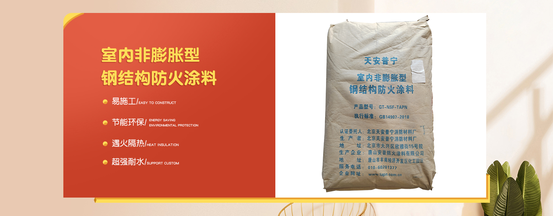 北京天安普寧消防材料廠是一家從事防火涂料二十多年生產(chǎn)企業(yè),企業(yè)集研制開發(fā)、生產(chǎn)銷售及各類防火涂料施工為一體。 企業(yè)員工總數(shù)100人,其中管理人員20人,科研人員10人,銷售50人,其他員工十多人。企業(yè)生產(chǎn)用地面積2000平方米左右,辦公用地面積1000平方米。擁有先進的生產(chǎn)設(shè)備20多臺,年生產(chǎn)量10000余噸。  企業(yè)擁有一支高學(xué)歷、資歷深的研發(fā)隊伍,以科學(xué)的管理,先進成套的生產(chǎn)流水線設(shè)備及完善的產(chǎn)品質(zhì)量檢驗措施,開發(fā)出TAPN系列防火涂料產(chǎn)品,可以滿足于各類建筑工程中不同基材、不同技術(shù)要求的防火保護,天安普寧系列防火涂料全部經(jīng)過《國家消防及阻燃產(chǎn)品質(zhì)量監(jiān)督檢驗中心》檢驗,理化性能合格,防火性能高,通過《應(yīng)急管理部消防產(chǎn)品合格評定中心》認證并獲得《消防身份信息標識》。 企業(yè)結(jié)合多年的工程施工實踐經(jīng)驗,培養(yǎng)了一支專業(yè)有素、經(jīng)驗豐富、高質(zhì)量、效率高的防火涂料施工隊伍,可承攬各類高層、多層、大跨度廠房及網(wǎng)架鋼結(jié)構(gòu)防火涂料噴涂施工服務(wù)。 企業(yè)始終為用戶全心全意服務(wù),不斷滿足各建設(shè)單位的要求,共同為我國的建筑消防事業(yè)作出更大的貢獻,衷心感謝新老客戶的支持,全體員工熱情歡迎廣大用戶的光臨惠顧。